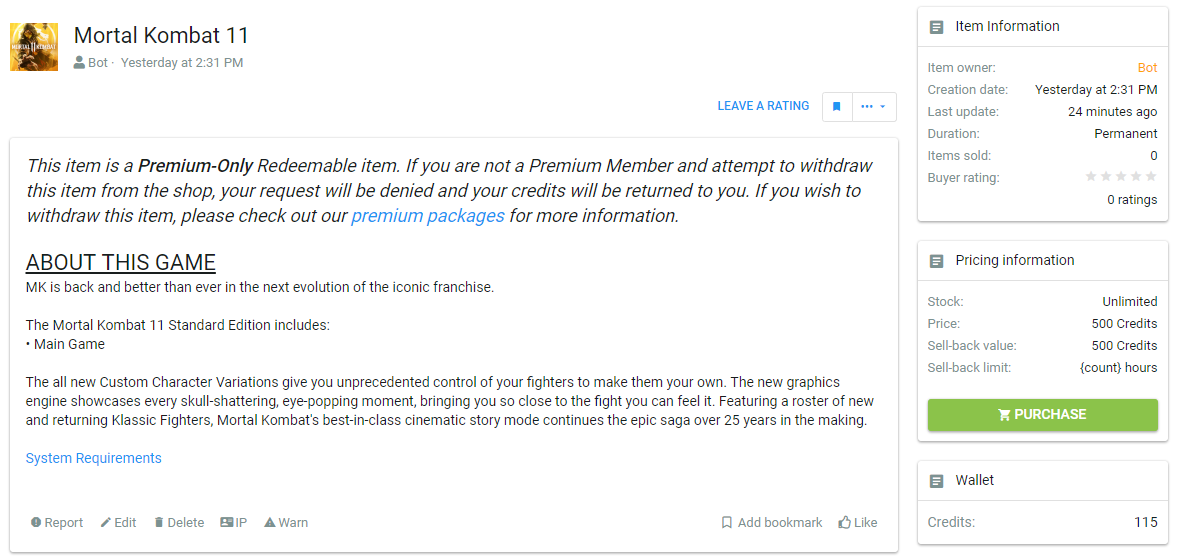Head over to the rewards tab to view the shop, choose an item that you want and click purchase. (Make sure you have enough credits in your wallet first by checking the "Wallet" tab underneath the purchase button)
