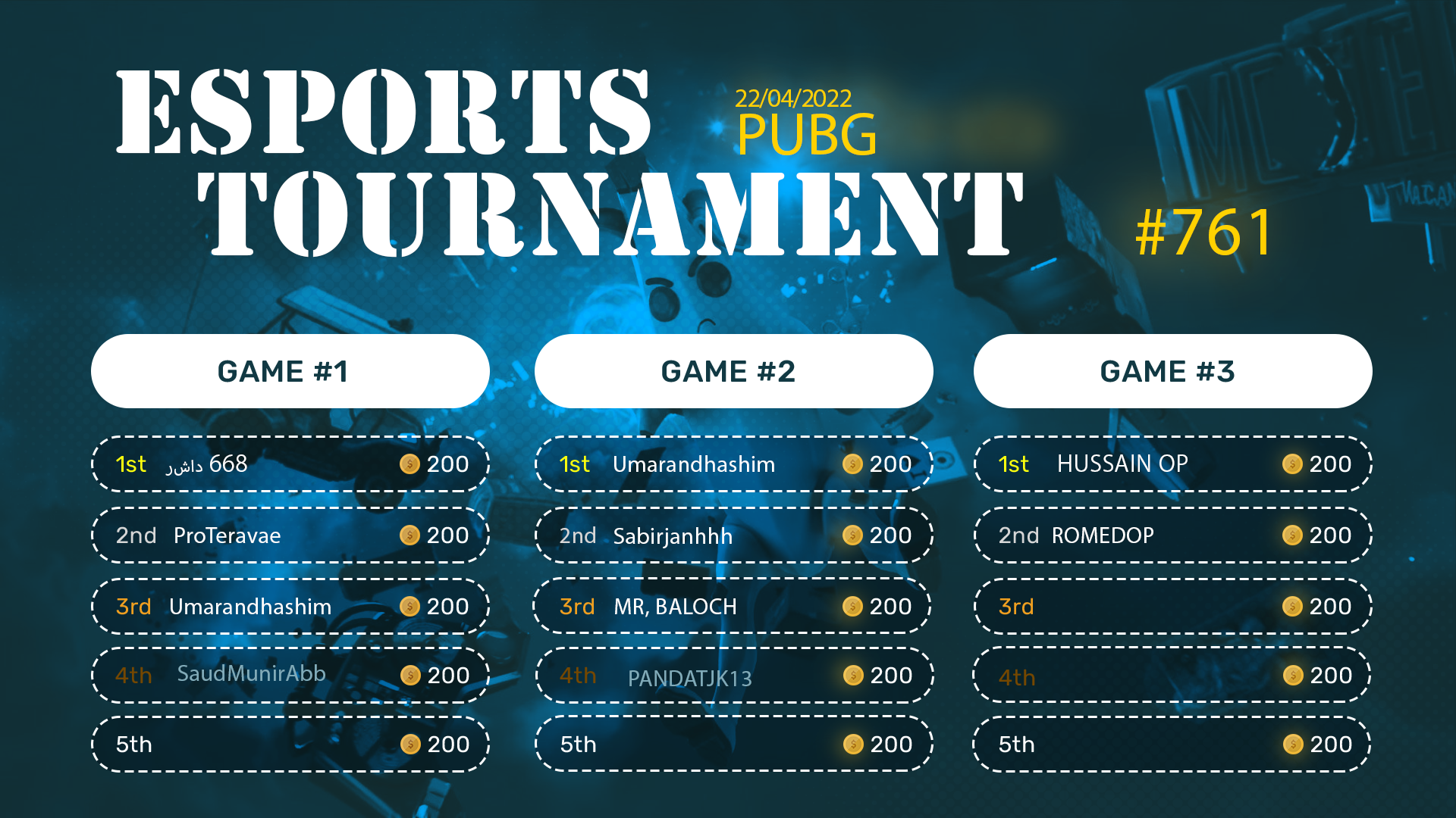 Esports Tournament #761- PUBG Mob- 22/04/2022